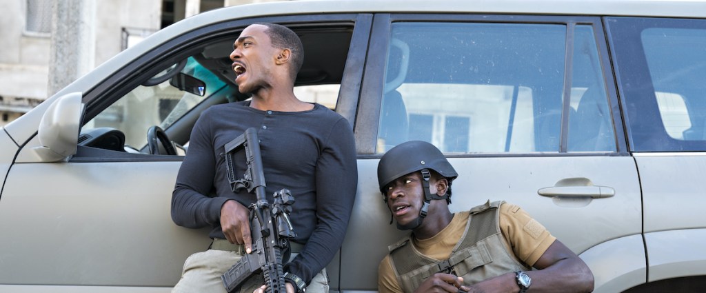Damson Idris plays Lieutenant Thomas Harp, a drone pilot for the U.S. military in 2036. Every movie set in the future makes guesses about what will be our priorities in technology and the consequences (If I had to pick the most likely one so far, it’d, believe it or not, be Ready Player One.) The one the writers of this one guessed is robots being built reliably enough to be soldiers for wars. Russia’s the enemy country here (fitting, like Angel has Fallen did) against the peaceful Ukraine (I can imagine this was filmed after the first impeachment), and when Harp decides to defy an order that leaves some dead but several alive, he’s stripped of his duty and risks prison, but he’s given a tiny second chance with an infamous military officer named Leo (Anthony Mackie). Harp realizes just about right away Leo’s not some strict bloke. He’s an android. The two of them must go through Russia, targeting a terrorist named Victor Koval from getting his hands on nuclear missile codes. And along the way, they’ll talk. They’ll conspire. Harp will get a taste for the first time of what it’s like in the field rather than behind a desk.