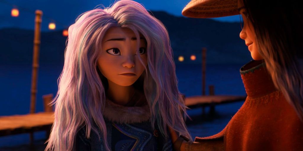 Here’s what really works: 1) Raya’s inability to trust. As someone who’s been hurt by people who have taken advantage of my generosity in the past, as well as how life often slams you for not being on board all the time, Raya was a fantastic character. 2) The adventure. As I said, it is fast, it’s well paced, and it feels like a full sort of divided whimsical land as it travels across the different tribes, which leads us to, 3) The crew. Every one of the squad Raya and Sisu accidentally form are fleshed out, not who they appear to be, and kind of unforgettable. 4) Most punches it doesn’t pull, especially with the dynamics of distrust, hate, and greed. 5) Namaari as a character. You love to hate her and yet we lightly see how she’s the protagonist of her own story. 6) The non-musical soundtrack. It’s just breathtaking. 7) Everything positive I mentioned way earlier.